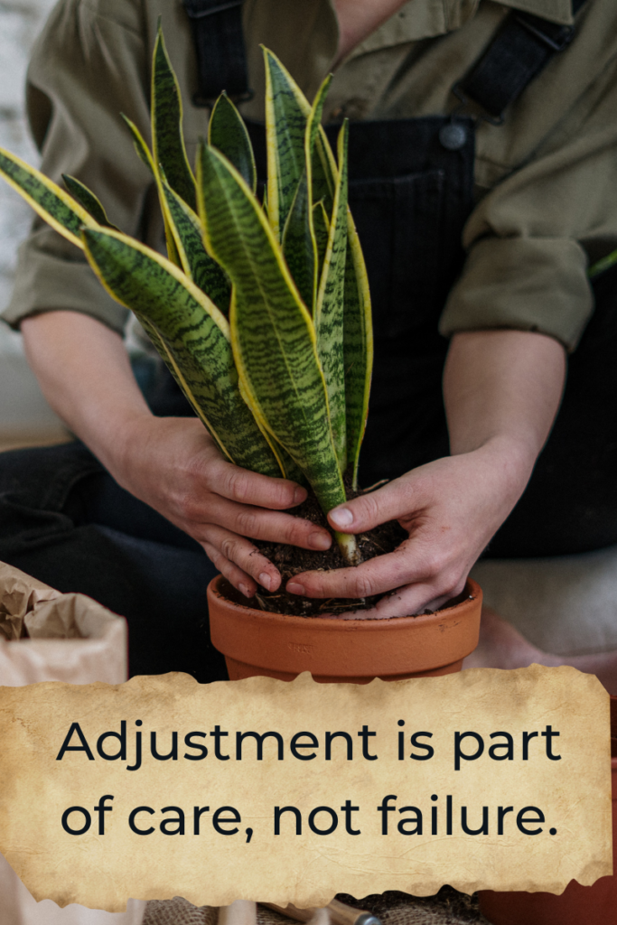 Before plants can reflect anything back to us, we first have to learn how to read them. Understanding plant signals, environmental shifts, and care patterns builds the foundation for awareness. I explore this more deeply in Why Plant Care Feels Hard (and How We Build Confidence With Houseplants).